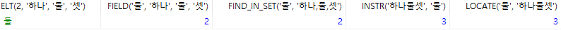 ELT(2, '하나', '둘', '셋'), -- 둘