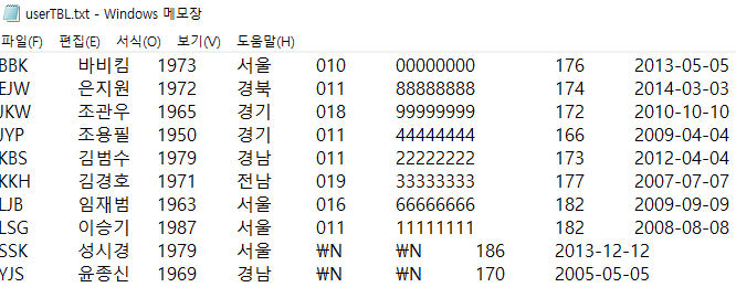 LOAD DATA LOCAL INFILE 'C:/temp/userTBL.txt' INTO TABLE memberTBL;