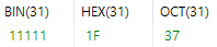 BIN(숫자), HEX(숫자), OCT(숫자)