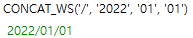 SELECT CONCAT_WS('/', '2022', '01', '01');