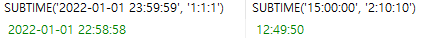 SUBTIME('2022-01-01 23:59:59', '1:1:1'),