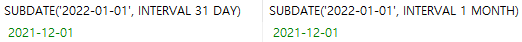 SUBDATE('2022-01-01', INTERVAL 1 MONTH);