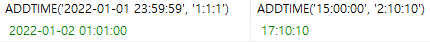 ADDTIME('2022-01-01 23:59:59', '1:1:1'),