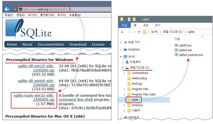 SQLite 설치 : https://www.sqlite.org/download.html