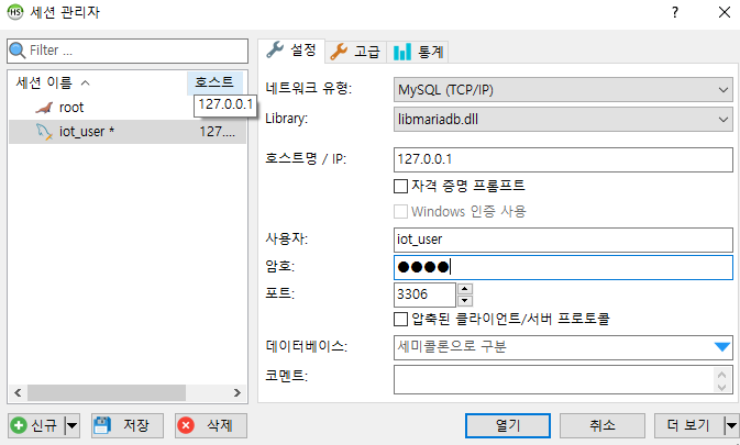 파일 > 세션 관리자 > 신규 > 저장 > 열기
