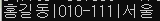1 : 홍길동 010-111 서울