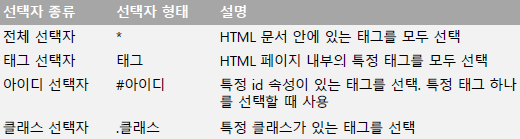 - 특정한 HTML 태그를 선택할 때 사용하는 기능