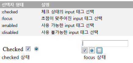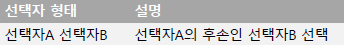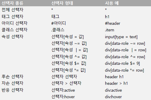 선택자 개요, 기본 선택자, 속성 선택자, 후손 선택자, 자손 선택자, 반응 선택자, 상태 선택자, 구조 선택자