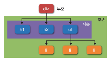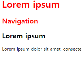 - header 태그의 후손인 h1 태그를 선택하고 일반적인 h2 태그를 선택