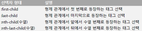 - 특정한 위치에 있는 태그를 선택할 때 사용