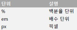 - % 단위: 기본으로 설정된 크기를 기준으로 상대적인 크기 지칭